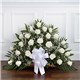 Send a message of sympathy, love and hope with this basket of white roses. Our florists create this special sympathy arrangement in a fireside basket filled with two dozen long stem white roses Accented with Babys Breath, Monte Casino, and more Usually sent by family members, friends or business associates Delivered directly to the funeral home Our florists choose only the freshest flowers available so varieties and colors may vary Measures approximately 26H x 34L